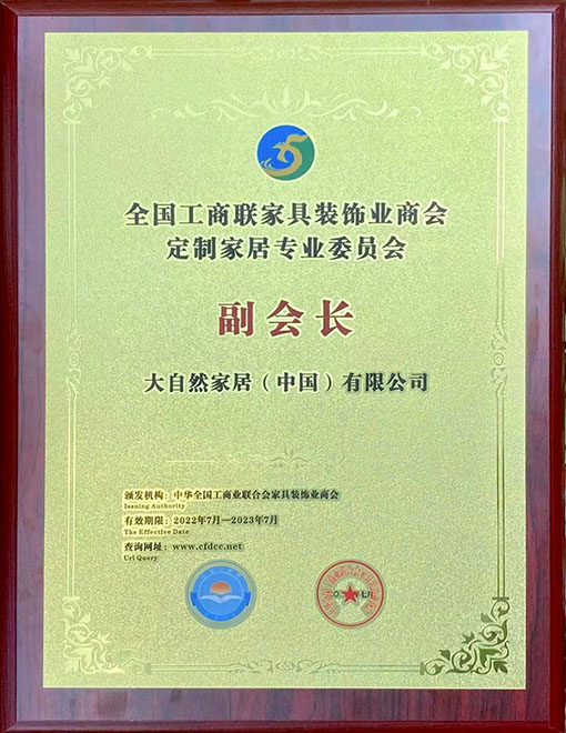 大自然家居當(dāng)選“全國(guó)工商聯(lián)家具裝飾業(yè)商會(huì)定制專(zhuān)委會(huì)副會(huì)長(zhǎng)”