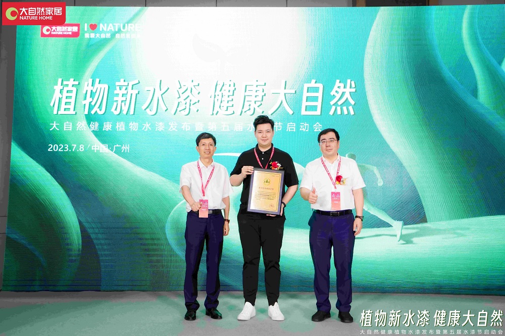 現場,大自然家居的科學技術成果獲得相關單位授牌,同時水漆狂歡節正式啟動,當健康植物水漆緩緩注入象征健康家居“六零健康新標準”啟動臺上,家居行業的植物水漆新時代也就此開啟。