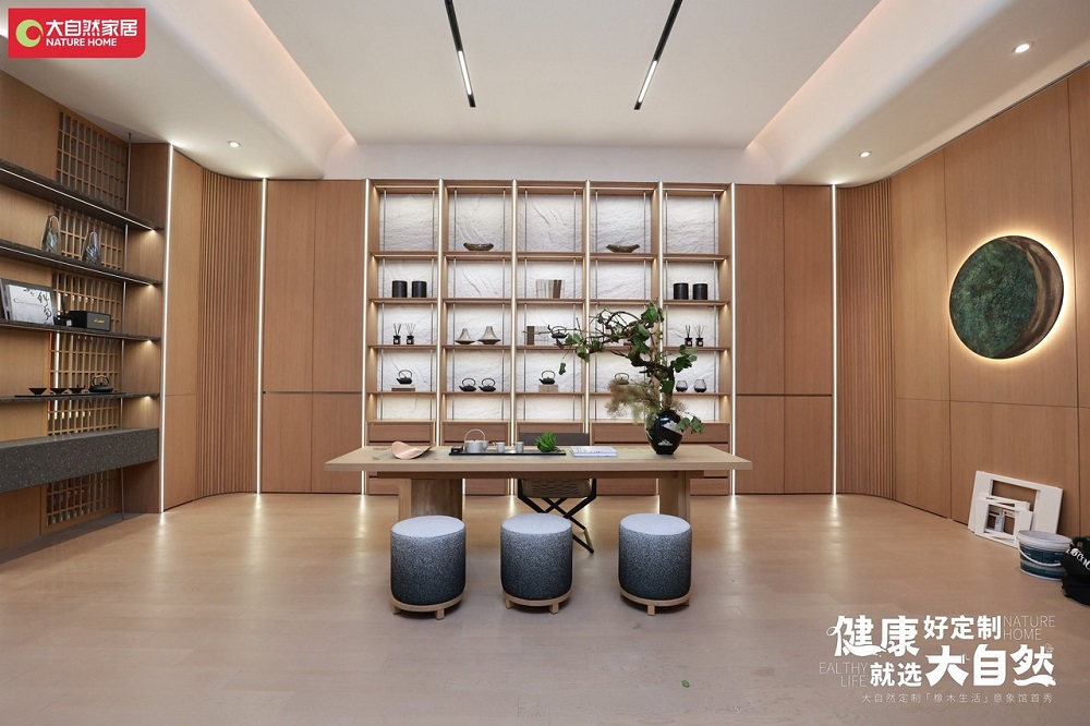近年來,國民的健康意識提升,家居行業也開始朝著綠色自然、健康環保的新風尚蝶變。展會期間,大自然以“健康好定制 就選大自然”為展館主題,打造「橡木生活」意象館首秀,將原生自然的狀態融入生活,為消費者構建自然舒適的整家定制方案。