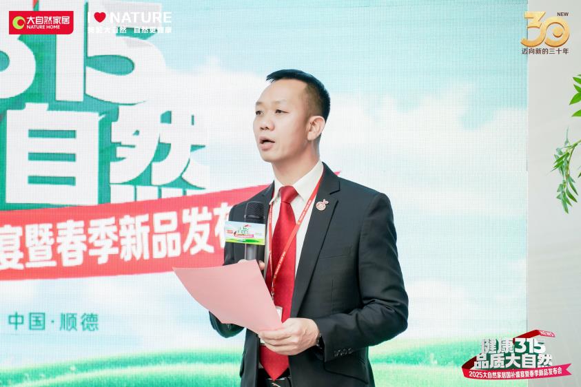發布會伊始,大自然家居集團副總裁、COO、CHO饒海清深刻闡述了大自然家居的品牌初心與未來愿景。饒海清表示,自1995年創立以來,大自然家居始終堅守“擔環保責任、普健康生活、做健康家居”的使命,以綠色健康為核心理念,持續探索可持續發展路徑。此外,他還強調讓億萬家庭享受健康家居,不是商業,而是一份責任;讓綠色生活觸手可及,不僅是愿景,更是實實在在的行動。大自然家居將以實際行動踐行承諾,推動綠色家居成為新時代風潮。