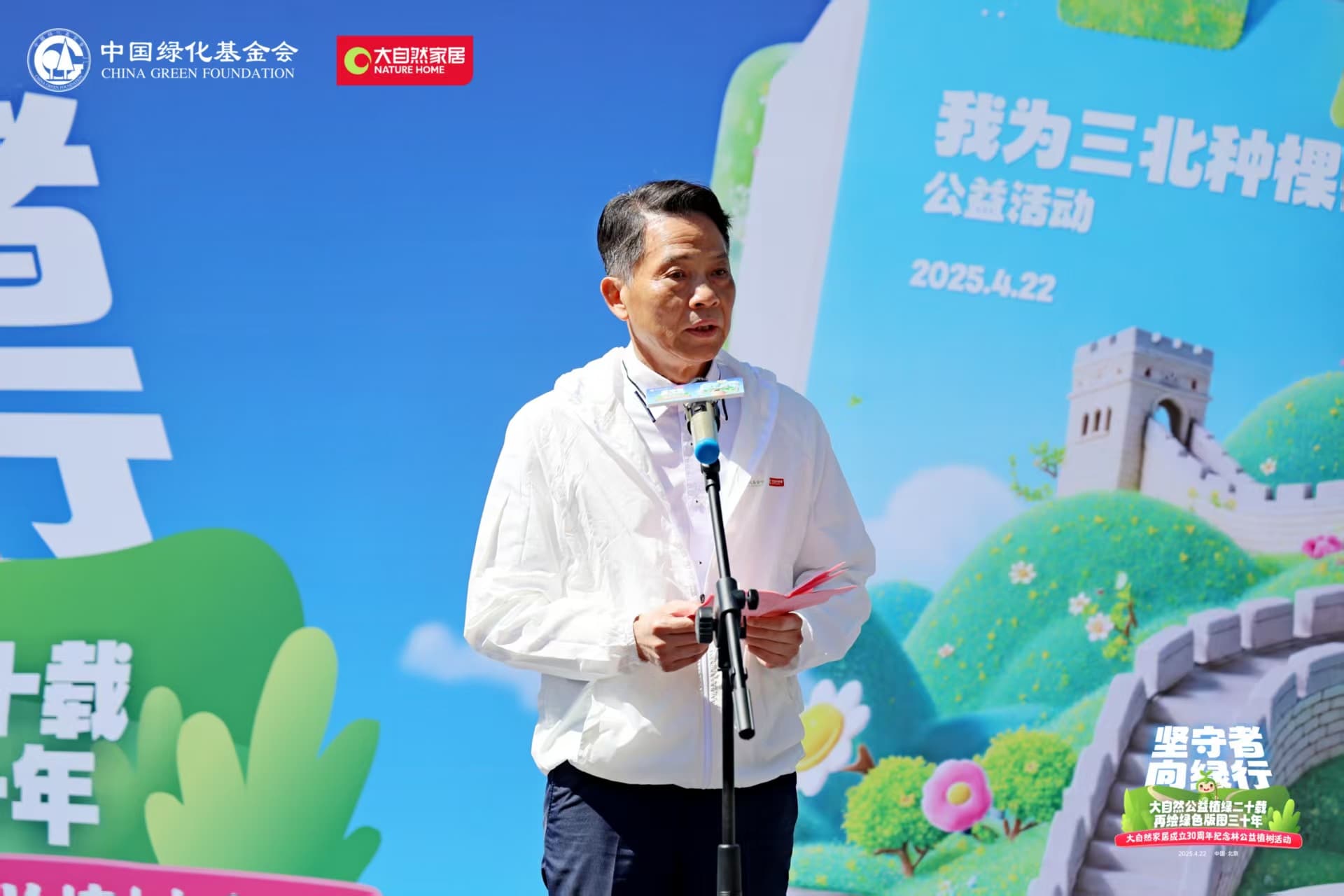 活動在中國綠化基金會副主席陳蓬的主持下拉開帷幕。北京市園林綠化局二級巡視員 王小平在致辭中強調:生態修復需要政府、企業、社會三方合力,大自然家居成立30年、20年植樹超百萬棵的實踐,為企業參與生態文明建設提供了范本。