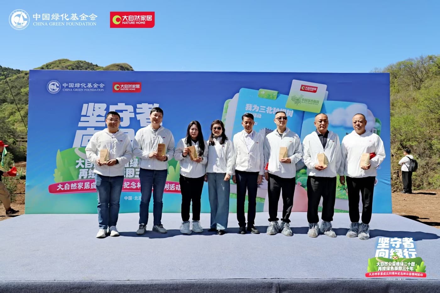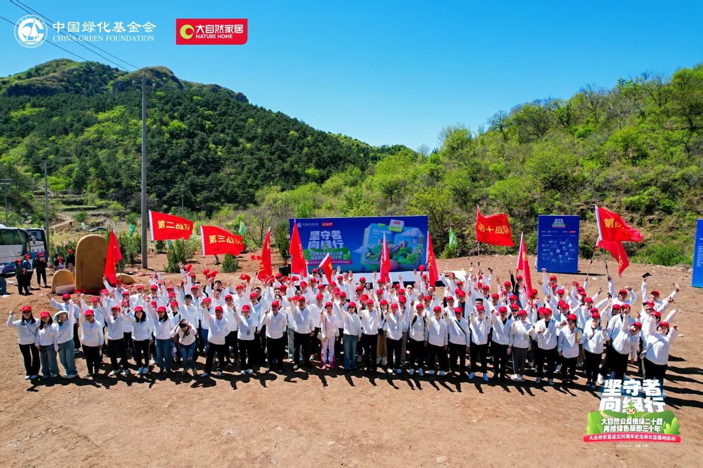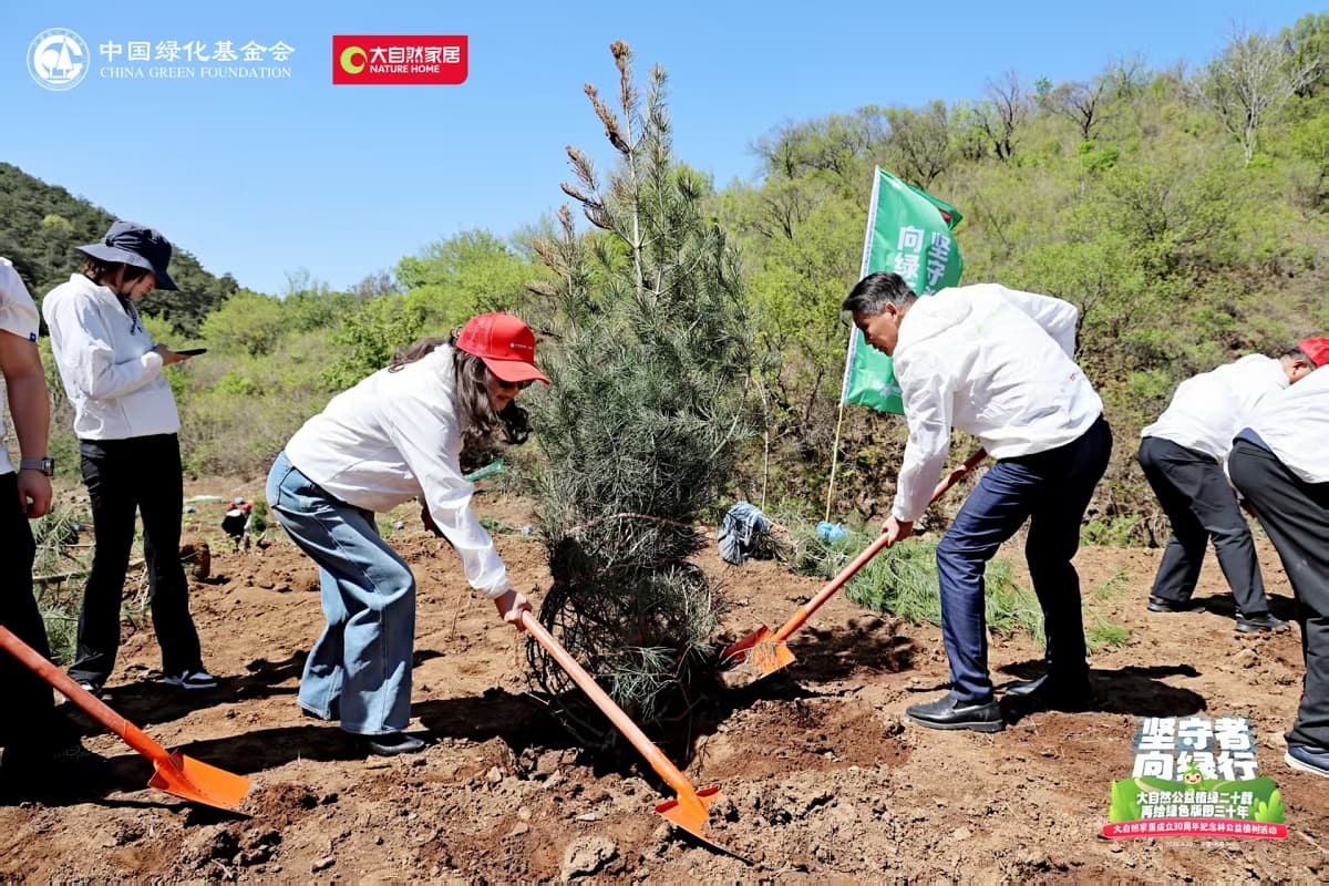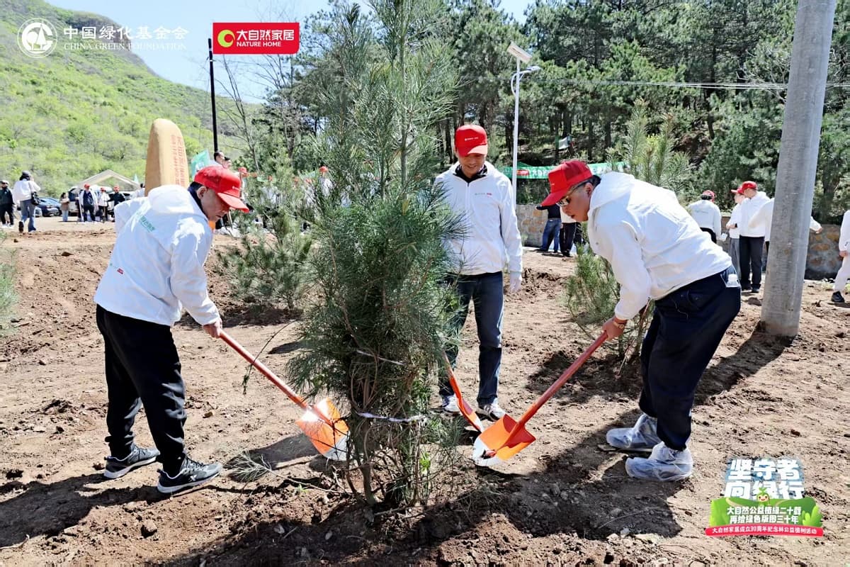 4月22日,值第56個世界地球日之際,大自然家居攜手中國綠化基金會,于北京密云區啟動“堅守者·向綠行”公益植樹活動。大自然家居以“成立30年、植樹20年”的雙里程碑,交出了一份“綠色智造”與“生態反哺”共生的可持續發展答卷。活動現場,中國綠化基金會、北京市園林綠化局、北京林學會、中國林業科學研究院、中國林產工業協會、中國林業產業聯合會、中國木材保護工業協會、中國木材與木制品流通協會代表,大自然家居高層管理人員、全國核心經銷商和供應商代表,媒體以及大自然家居消費者、公益植樹環保志愿者等各界人士,見證“中國綠色版圖”公益工程20年成果及未來十年計劃啟動。