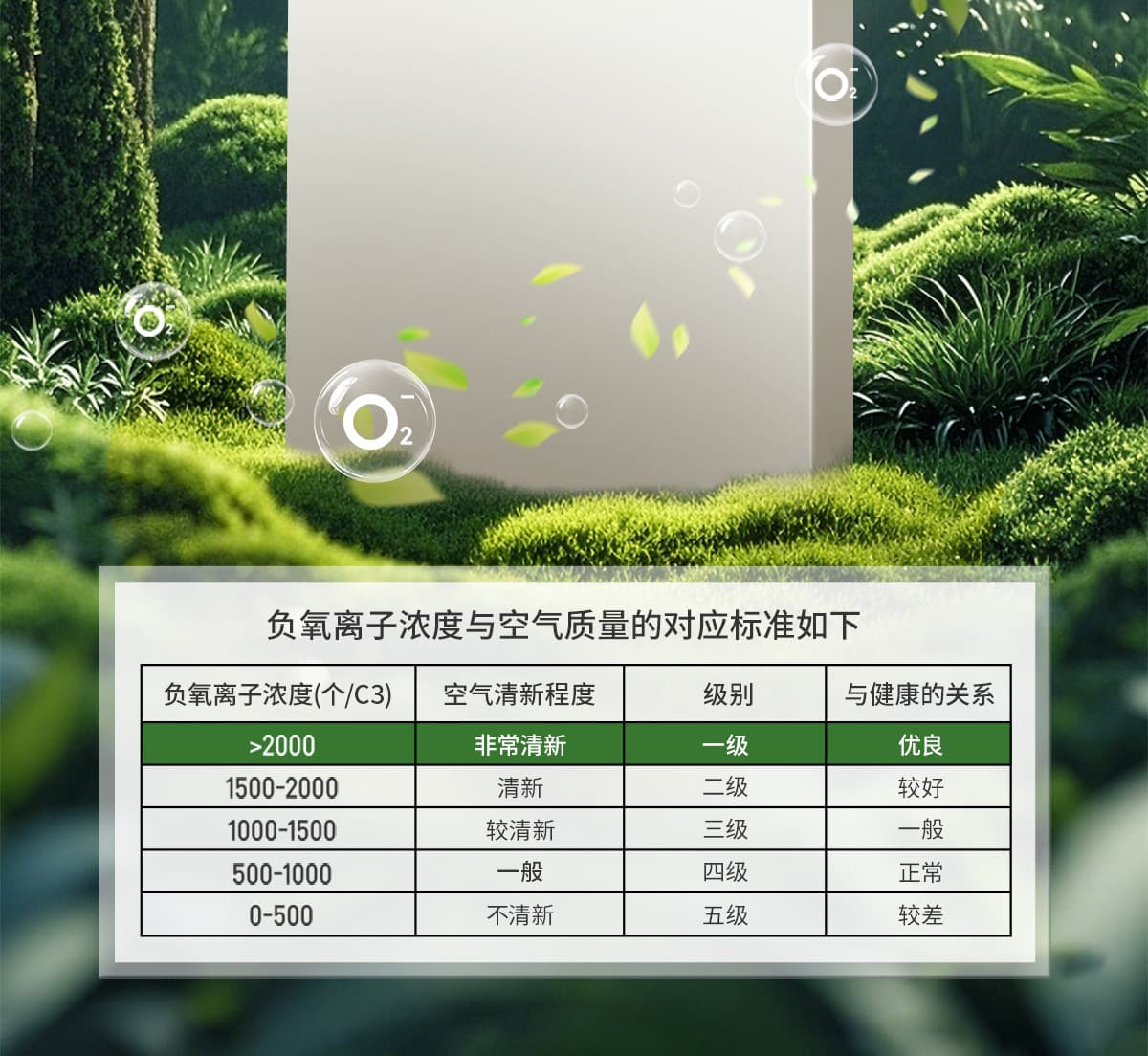 誘發(fā)空氣負離子量 比基礎環(huán)境提高10倍+