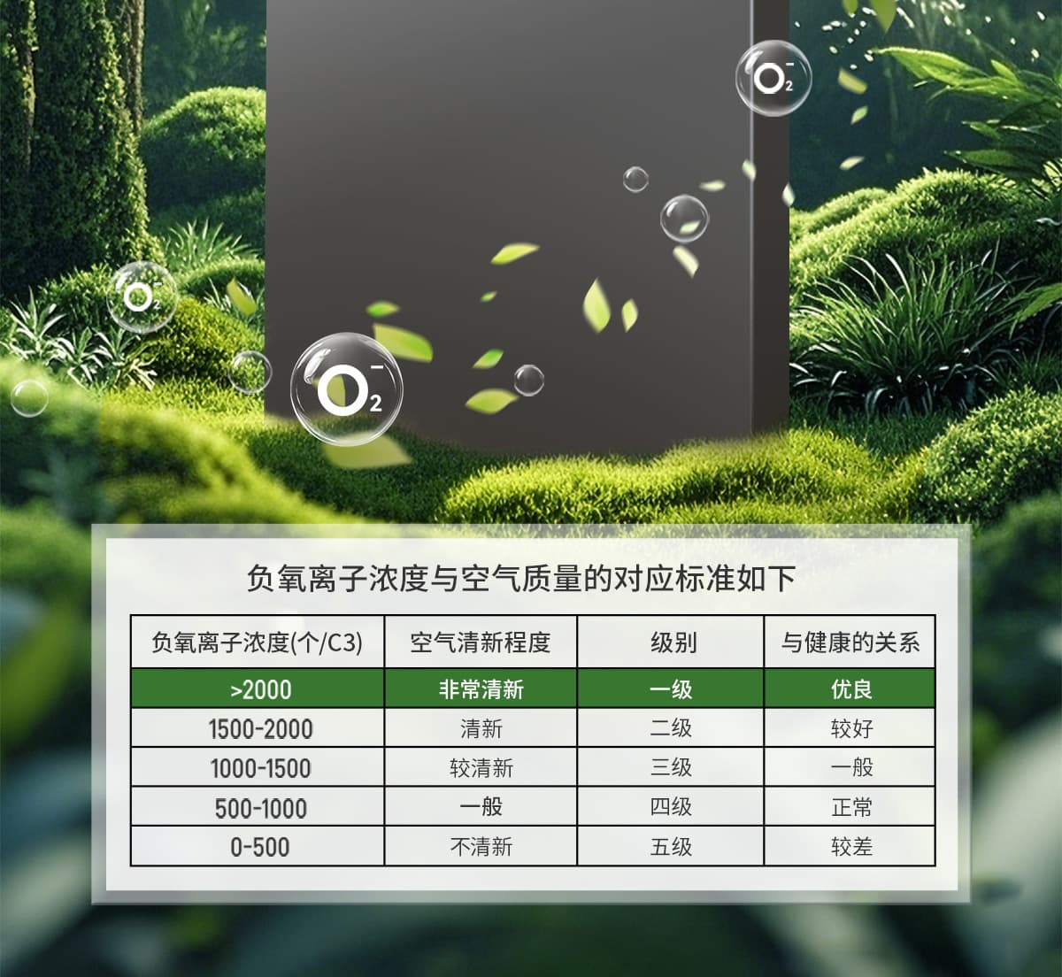 誘發(fā)空氣負(fù)離子量 比基礎(chǔ)環(huán)境提高10倍+